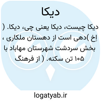 دیکا. ( اِخ )دهی است از دهستان ملکاری، بخش سردشت شهرستان مهاباد با 105 تن سکنه. ( از فرهنگ جغرافیائی ایران ج 4 ).