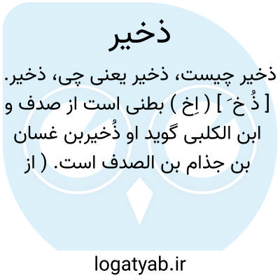 ذخیر. [ ذُ خ َ ] ( اِخ ) بطنی است از صدف و ابن الکلبی گوید او ذُخیربن غسان بن جذام بن الصدف است. ( از انساب سمعانی ). و صاحب تاج العروس بجای ذخیربن غسان ذخیربن شجنان آورده است و ظاهراً غلط است.