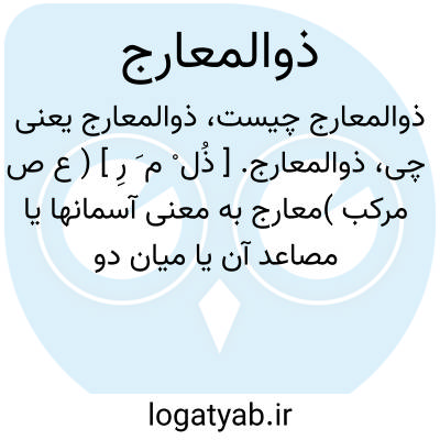 ذوالمعارج. [ ذُل ْ م َ رِ ] ( ع ص مرکب )معارج به معنی آسمانها یا مصاعد آن یا میان دو آسمان. || ( اِخ ) نامی از نامهای خدای تعالی.