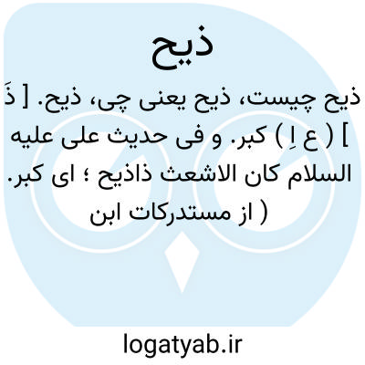 ذیح. [ ذَ ] ( ع اِ ) کبر. و فی حدیث علی علیه السلام کان الاشعث ذاذیح؛ ای کبر. ( از مستدرکات ابن الاثیر، بنقل سید فرج اﷲ ).