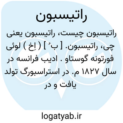 راتیسبون. [ ب ُ ] ( اِخ ) لوئی فورتونه گوستاو. ادیب فرانسه در سال 1827 م. در استراسبورگ تولد یافت و در 1900 م. در پاریس مرد. بعد از آنکه درکالج هانری چهارم تحصیلات کرد به ادبیات و روزنامه نگاری گرائید از 1853 م.تا 1876 م.در مذاکرات سیاسی شرکت کرد. در 1871 م. به کتابداری فونتنبلو منصوب شد سپس در سال 1875 م. کتابدار سنا شد. ( لاروس فرانسه ).
