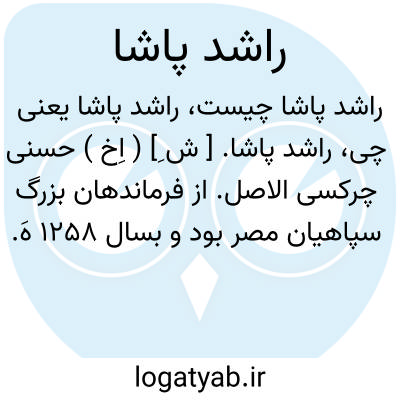 راشد پاشا. [ ش ِ] ( اِخ ) حسنی چرکسی الاصل. از فرماندهان بزرگ سپاهیان مصر بود و بسال 1258 هَ. ق. در چرکس قفقاز تولد یافت و در 6 سالگی بسوی اسلامبول رفت. سپس در 11 سالگی بمصر روانه شد و در یکی از مدارس نظامی آنجا بتحصیل پرداخت و دو سال نیز در فرانسه بتکمیل فنون نظامی مشغول شد تا در ارتش مصر بدرجه سپهبدی رسید. او همراه سپاهی بود که اسماعیل خدیوی از طرف خود برای کمک به دولت عثمانی در خواباندن شورش «کریت » فرستاده بود وی در سال 1284 هَ. ق. به مصر بازگشت. خدیوی دوباره او را بکمک دولت عثمانی در جنگ بر ضد سپاهیان آلمان ( صربستان ) فرستاد و سپس وی را بیاری آنان در جنگ باروس گسیل داشت. او به نبوغ نظامی و سپاهیگری خود شهرت بزرگی یافت. سپس هنگامی که نهضت اعراب بالا گرفت بدانها پیوست و در جنگ «القصاصین » دوم بسال 1299 هَ.ق. فرماندهی جنگ را بعهده گرفت و جنگ سختی با نیروی مخالف کرد تا پایش تیر خورد و او را برای معالجه به قاهره بردند. مصطفی کامل در کتاب «المسألة الشرقیة» می نویسد: او با اینکه اصلا چرکسی بود و با علم باینکه انگلیسی ها برای گرفتن اسکندریه و ورود بشهرهای مصر نقشه کشیده اند برای دفاع از میهن، مردانه قد علم کرد و اختلاف شدیدی را که بین اعراب و چرکسی ها بود به دست فراموشی سپرد. وی بسبب داشتن سبیل های زرد به «بی شنب فضة» معروف گردیده بود. ( از اعلام زرکلی ج 3 ).