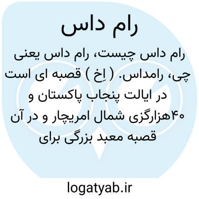 رامداس. ( اِخ ) قصبه ای است در ایالت پنجاب پاکستان و 40هزارگزی شمال امریچار و در آن قصبه معبد بزرگی برای پیروان مذهب سیک وجود دارد. ( از قاموس الاعلام ترکی ).