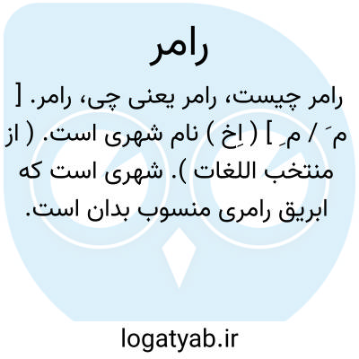 رامر. [ م َ / م ِ ] ( اِخ ) نام شهری است. ( از منتخب اللغات ). شهری است که ابریق رامری منسوب بدان است. ( برهان ) ( از شرفنامه منیری ) ( از فرهنگ رشیدی ). نام شهری است که در آن کوزه و ابریق های بی نظیر میسازند بغایت زیبا و نیکو، و ابریق و کوزه ٔآن بسیار معروفست. ( از شعوری ج 2 ورق 5 ). احتمال توان داد که مصحف رامز باشد یعنی شهر رامهرمز خوزستان.