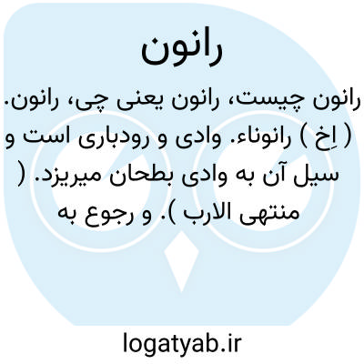 رانون. ( اِخ ) رانوناء. وادی و رودباری است و سیل آن به وادی بطحان میریزد. ( منتهی الارب ). و رجوع به رانوناء شود.