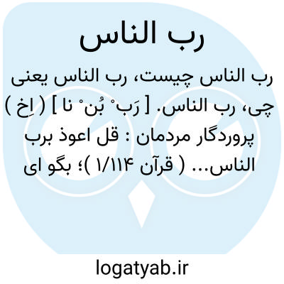 رب الناس. [ رَب ْ بُن ْ نا ] ( اِخ ) پروردگار مردمان: قل اعوذ برب الناس... ( قرآن 1/114 )؛ بگو ای محمد ( ص ) پناه میبرم به پروردگار مردمان. ( تفسیر ابوالفتوح رازی ج 10 ص 397 ).