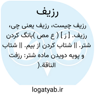 رزیف. [ رَ ] ( ع مص )بانگ کردن شتر. || شتاب کردن از بیم. || شتاب و پویه دویدن ماده شتر: رزفت الناقة.( ناظم الاطباء ) ( منتهی الارب ) ( از آنندراج ) ( از اقرب الموارد ). بشتاب دویدن و گویند: اسرع من فزع. ( از اقرب الموارد ). || نزدیک شدن کار: رزف الامر. || پیش درآمدن کسی را: رزف الیه. ( ناظم الاطباء ) ( منتهی الارب ) ( آنندراج ) ( از اقرب الموارد ).