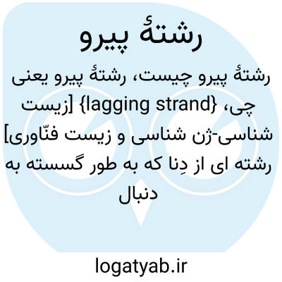 {lagging strand} [زیست شناسی-ژن شناسی و زیست فنّاوری] رشته ای از دِنا که به طور گسسته به دنبال همتاسازی رشتۀ پیشرو ساخته میشود