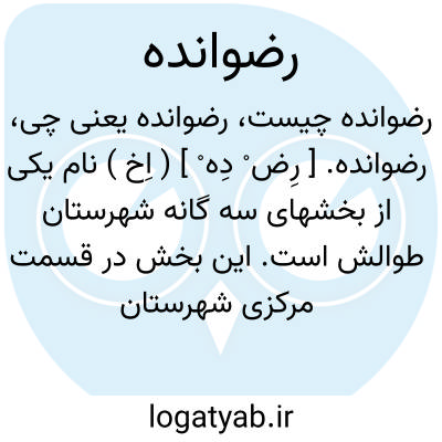 رضوانده. [ رِض ْ دِه ْ ] ( اِخ ) نام یکی از بخشهای سه گانه شهرستان طوالش است. این بخش در قسمت مرکزی شهرستان واقع و از طرف شمال به بخش حومه و از طرف جنوب به بخش ماسال شاندرمن و از خاور به دریای خزر و از باختر به خط رأس سلسله البرز بین گیلان و خلخال محدود است.راه اسفالت بندر انزلی به آستارا از این بخش می گذرد. راه آهن کم عرضی که برای حمل سنگ از پونل به کپورچال کشیده شده در قسمت جنوبی این بخش واقع است. مرکز بخش طبق سازمان باید رضوانده باشد ولی فعلاً بخشداری درآبادی پونل در ساختمانی که متعلق به اداره بندر است ساکن می باشد. این بخش از چهار دهستان بنام گیل دولاب، پره سر، میانده، خشابر، تشکیل می یابد و دهستانهای پره سر، میانده، خشابر به طالشدولاب معروفست. جمع قراء بخشن رضوانده 60 آبادی بزرگ و کوچک و جمعیت آن در حدود 23هزار تن است. ( از فرهنگ جغرافیایی ایران ج 2 ).