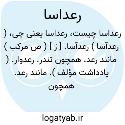 ( رعدآسا ) رعدآسا. [ رَ ] ( ص مرکب ) مانند رعد. همچون تندر. رعدوار. ( یادداشت مؤلف ). مانند رعد. همچون تندر: آوای رعد آسا. ( فرهنگ فارسی معین ).