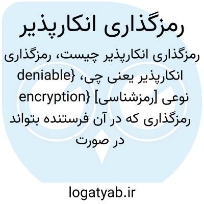 {deniable encryption} [رمزشناسی] نوعی رمزگذاری که در آن فرستنده بتواند در صورت لزوم ارسال پیام رمزشده را انکار کند متـ. رمزگذاری فرستنده انکارپذیر sender deniable encryption