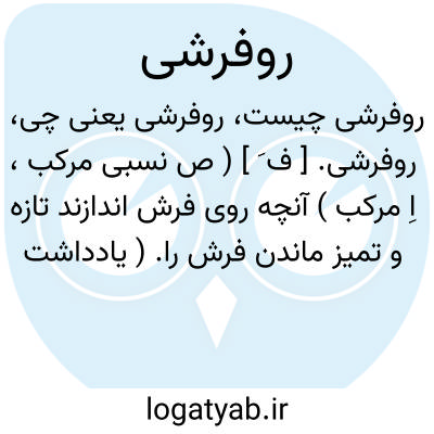 روفرشی. [ ف َ ] ( ص نسبی مرکب، اِ مرکب ) آنچه روی فرش اندازند تازه و تمیز ماندن فرش را. ( یادداشت مؤلف ). پارچه ای از پشم و کتان یا پنبه که بر روی فرش اطاق گسترند تا فرش گرانبها از نور آفتاب و پاخوردگی حفظ شود یا عیب فرش پوشیده ماند، و آن به مقتضای فصل تغییرپذیر است. ( فرهنگ فارسی معین ). || کفش راحتی که در خانه پا کنند.