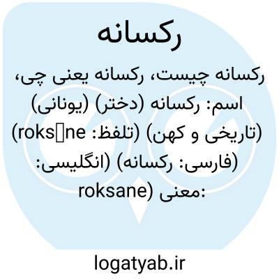 معنی: رکسانا، روشنک، دختر دارا و همسر اسکندر، ( = رکسانا )، از شخصیتهای شاهنامه، نام دختر داراب و همسر اسکندر مقدونی