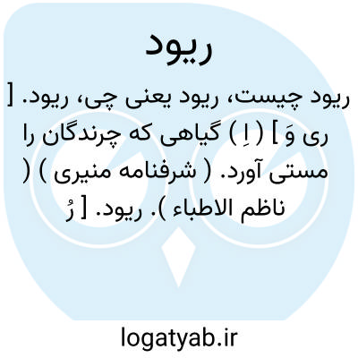 ریود. [ ری وَ ] ( اِ ) گیاهی که چرندگان را مستی آورد. ( شرفنامه منیری ) ( ناظم الاطباء ).