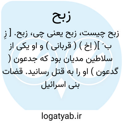 زبح. [ زِ ب َ ]( اِخ ) ( قربانی ) و او یکی از سلاطین مدیان بود که جدعون ( گدعون ) او را به قتل رسانید. قضات بنی اسرائیل 8:5 - 28، مزامیر 83:11. ( قاموس کتاب مقدس ). بستانی آرد: زبح یکی از دو پادشاهان مدیانی است که در جنگ فلسطین شرکت کردند و سرانجام بدست جدعون به قتل رسیدند.نام پادشاه دیگر صَلمُنّاع است که در کتاب قضات بنی اسرائیل 8:5 تا آخر نام او با نام زبح آمده همانجا که داستان جنگ و شکست آنان در برابر جدعون و اسارت وقتلشان بدست او آمده. ( از دائرة المعارف بستانی ).