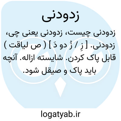 زدودنی. [ زِ / زُ دو دَ ] ( ص لیاقت ) قابل پاک کردن. شایسته ازاله. آنچه باید پاک و صیقل شود.