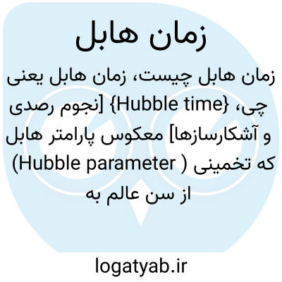 {Hubble time} [نجوم رصدی و آشکارسازها] معکوس پارامتر هابل (Hubble parameter ) که تخمینی از سن عالم به دست می دهد