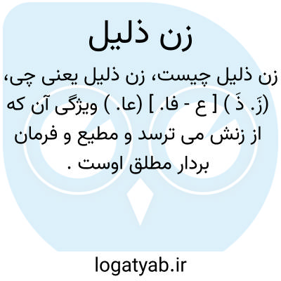 (زَ. ذَ ) [ ع - فا. ] (عا. ) ویژگی آن که از زنش می ترسد و مطیع و فرمان بردار مطلق اوست.