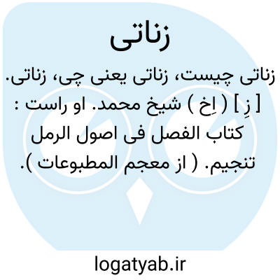 زناتی. [ زِ ] ( اِخ ) شیخ محمد. او راست: کتاب الفصل فی اصول الرمل تنجیم. ( از معجم المطبوعات ).