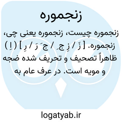 زنجموره. [ زَ / زِ ج ِ / ج َ رَ / رِ ] ( اِ ) ظاهراً تصحیف و تحریف شده ضجه و مویه است. در عرف عام به همان معنی اصلی یعنی ناله، فریاد، مویه، التماس، گریه و زاری نومیدانه و از روی تأثر به کار می رود. حرف اول این واژه را به فتح و گاه به کسر می خوانند. ( فرهنگ لغات عامیانه جمال زاده ).