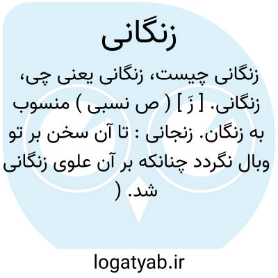 زنگانی. [ زَ ] ( ص نسبی ) منسوب به زنگان. زنجانی: تا آن سخن بر تو وبال نگردد چنانکه بر آن علوی زنگانی شد. ( منتخب قابوسنامه ص 52 ).