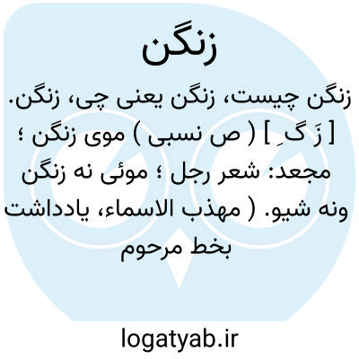 زنگن. [ زَ گ ِ ] ( ص نسبی ) موی زنگن؛ مجعد: شعر رجل؛ موئی نه زنگن ونه شیو. ( مهذب الاسماء، یادداشت بخط مرحوم دهخدا ).
