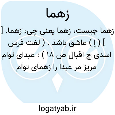 زهما. [ ] ( اِ ) عاشق باشد. ( لغت فرس اسدی چ اقبال ص 18 ):