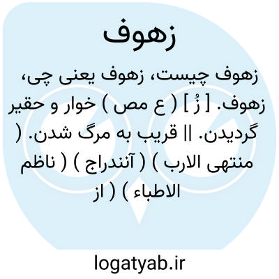 زهوف. [ زُ ] ( ع مص ) خوار و حقیر گردیدن. || قریب به مرگ شدن. ( منتهی الارب ) ( آنندراج ) ( ناظم الاطباء ) ( از اقرب الموارد ). || دروغ آوردن. ( منتهی الارب ) ( آنندراج ). دروغ گفتن. ( ناظم الاطباء ) ( از اقرب الموارد ). || هلاک شدن. ( منتهی الارب ) ( آنندراج ) ( از ناظم الاطباء ) ( از اقرب الموارد ).