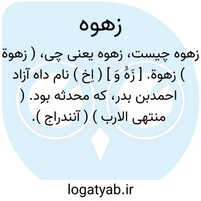 ( زهوة ) زهوة. [ زَهَْ وَ ] ( اِخ ) نام داه آزاد احمدبن بدر، که محدثه بود. ( منتهی الارب ) ( آنندراج ).