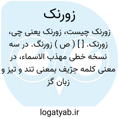 زورنک. [ ] ( ص ) زورنگ. در سه نسخه خطی مهذب الاسماء، در معنی کلمه حِرّیف بمعنی تند و تیز و زبان گز آمده است و در جای دیگر نیافتم. ( یادداشت بخط مرحوم دهخدا ).