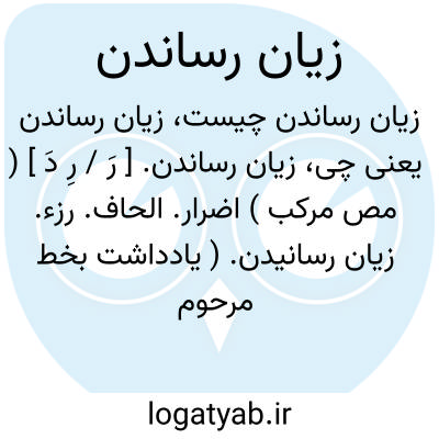 زیان رساندن. [ رَ / رِ دَ ] ( مص مرکب ) اضرار. الحاف. رزء. زیان رسانیدن. ( یادداشت بخط مرحوم دهخدا ). خسارت و گزند وارد آوردن بر چیزی یا کسی.