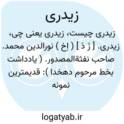 زیدری. [ زَ دَ ] ( اِخ ) نورالدین محمد. صاحب نفثةالمصدور. ( یادداشت بخط مرحوم دهخدا ): قدیمترین نمونه این شیوه یعنی نثر متکلفانه و مسجع ومصنوع مقامات حمیدی و نفثةالمصدور زیدری... می باشد.( سبک شناسی بهار ج 1 ص 287 ). رجوع به نسوی محمدبن احمد و خطوط خوش کتابخانه شاهنشاهی و ماده قبل شود.