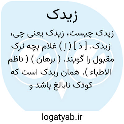زیدک. [ دَ ] ( اِ ) غلام بچه ترک مقبول را گویند. ( برهان ) ( ناظم الاطباء ). همان ریدک است که کودک نابالغ باشد و در رود گذشت. زیدک غلط است که صاحب برهان گفته. ( انجمن آرا ) ( آنندراج ). غلام امرد بود. ( اوبهی ). در کلمه «رود» صاحب انجمن آرا می گوید: «ریدک » اصلش «رودک » یعنی فرزند کوچک و در تحفة الاحباب هم زیدک ضبط شده و برهان زیدک و ریدک هر دو را ضبط کرده است، ولی در دو نسخه حاشیه فرهنگ اسدی نخجوانی با زاء معجمه ضبط شده و گوید زیدک غلام امرد بود. فردوسی گوید: