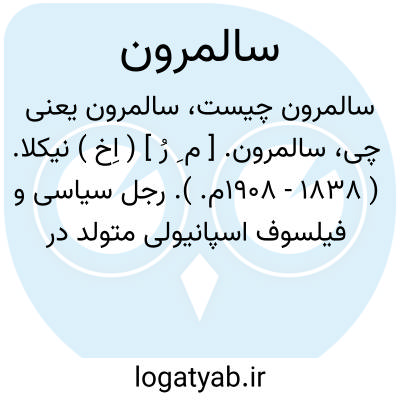 سالمرون. [ م ِ رُ ] ( اِخ ) نیکلا. ( 1838 - 1908م. ). رجل سیاسی و فیلسوف اسپانیولی متولد در آلهاما. او در سال 1873م. بمقام ریاست جمهوری رسیده است.