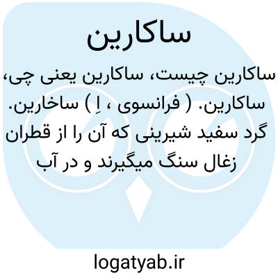 ساکارین. ( فرانسوی، اِ ) ساخارین. گرد سفید شیرینی که آن را از قطران زغال سنگ میگیرند و در آب بزحمت حل میشود ولی در الکل حل میشود و در طب بکار میرود. جوهر قند. جوهر شکر.