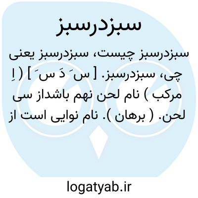 سبزدرسبز. [ س َ دَ س َ ] ( اِ مرکب ) نام لحن نهم باشداز سی لحن. ( برهان ). نام نوایی است از موسیقی. ( شرفنامه ) ( غیاث ). سبز اندر سبز. ( آنندراج ):