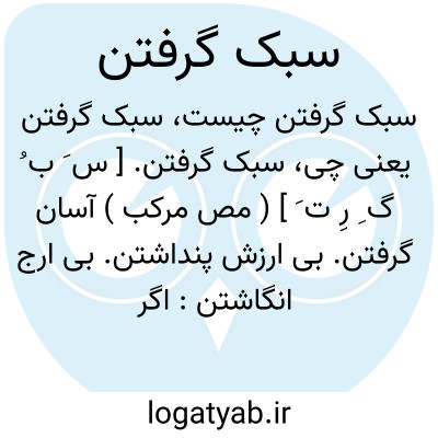 سبک گرفتن. [ س َ ب ُ گ ِ رِ ت َ ] ( مص مرکب ) آسان گرفتن. بی ارزش پنداشتن. بی ارج انگاشتن: