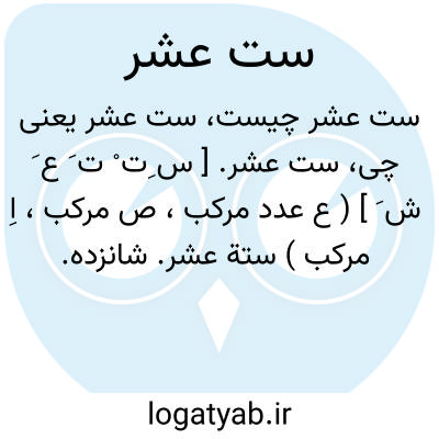 ست عشر. [ س ِت ْ ت َ ع َ ش َ ] ( ع عدد مرکب، ص مرکب، اِ مرکب ) ستة عشر. شانزده.