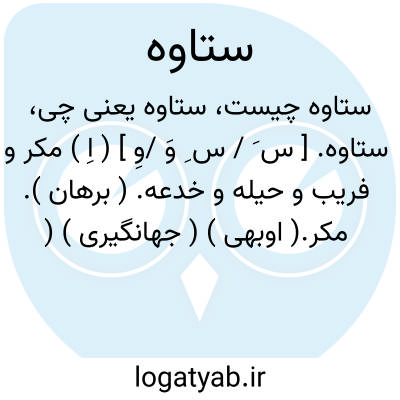 ستاوه. [ س َ / س ِ وَ /وِ ] ( اِ ) مکر و فریب و حیله و خدعه. ( برهان ). مکر.( اوبهی ) ( جهانگیری ) ( رشیدی ) ( آنندراج ):