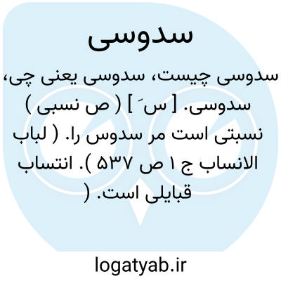 سدوسی. [ س َ ] ( ص نسبی ) نسبتی است مر سدوس را. ( لباب الانساب ج 1 ص 537 ). انتساب قبایلی است. ( الانساب سمعانی ).