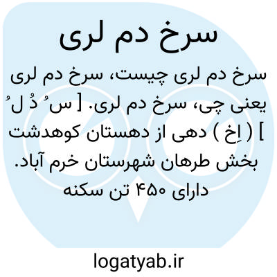 سرخ دم لری. [ س ُ دُ ل ُ ] ( اِخ ) دهی از دهستان کوهدشت بخش طرهان شهرستان خرم آباد. دارای 450 تن سکنه است. آب آن از چشمه سرخ دم لری می باشد. محصول آنجا غلات، لبنیات. ساکنان از طایفه خوش دام آونداند و در ساختمان و چادر سکونت دارند. ( از فرهنگ جغرافیائی ایران ج 6 ).