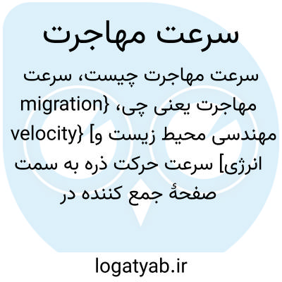 {migration velocity} [مهندسی محیط زیست و انرژی] سرعت حرکت ذره به سمت صفحۀ جمع کننده در رسوب ده ایستابرقی/ الکترواستاتیکی