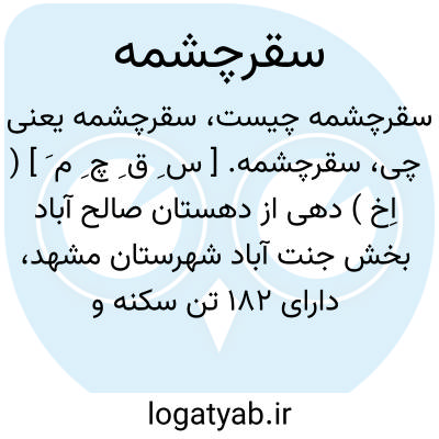 سقرچشمه. [ س ِ ق ِ چ ِ م َ ] ( اِخ ) دهی از دهستان صالح آباد بخش جنت آباد شهرستان مشهد، دارای 182 تن سکنه و آب آن از قنات است. ( از فرهنگ جغرافیایی ایران ج 9 ).