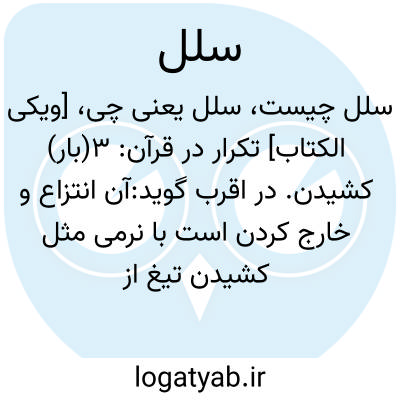 کشیدن. در اقرب گوید:آن انتزاع و خارج کردن است با نرمی مثل کشیدن تیغ از غلاف و موی از خمیر. راغب ملایمت را قید نکرده و گوید: ماندد کشیدن شمشیر از غلاف و کشیدن چیزی از خانه به طریق سرقت. و کشیدن پسر از پدر.. لداذ از «لاذَ - یَلُوذُ» به هم دیگر پناه بردن است تسلّل خروج پنهانی است (مجمع) یعنی خدا داناست به انکه در پناه یکدیگر پنهانی از محضر رسول او خارج میشوند. آنگاه که آن حضرت رسول صلی اللّه علیه و اله و سلم مردم را به جهاد و نحو آن دعوت میکرد بعضیها در پشت سر دیگران پنهانی از مسجد خارج میگشتند آیه درباره آنهاست. در نهج البلاغه نامه 70 به سهل بن حنیف نوشته «بَلَغَنی اَنَّ رِجالاً مِمَّنْ قِبَلَکَ یِتَسَلَّلُونَ اِلی مُعاوِیَةَ فَلا تَأْسَفْ عَلی ما یَفُوتُکَ مِنْ عَدَدِهِمْ» شنیدم بعضی از مردمان شهر تو پنهانی به طرف معاویه میروند از رفتن این عدّه متأسف نباش. *.. سلالة فقط در این دو جا از قرآن آمده است. اهل لغت آن را چکنده. و صاف شده گفتهاند. فرزند را سلاله و سلیله و سلیل گفتهاند که چکیده و کشیده مرد است. سلاله در هر دو آیه نکره است مراد از آن در آیه دوم بنابر علم امروز سلول مرد (اسپرماتوزئید) است که چکیده منی و به وجود آمده در آن و صاف شده از آن است. به نظرم مراد از سلاله اول هم همان سلّول است منتهی در خلقت اول همان سلّول در میان گلی به خصوص بود، پس جای سلّول در اول گل و لجن بود. و در خلقت دوم جای آن منی است مثل. بنابر آنکه علق جمع علقه به معنی کرم و زالو است رجوع شود به «آدم». در نهج البلاغه خطبه 161 راجع به دو نوع خلقت فرموده «بُدِئْتَ مِنْ سُلالَةِ مِنْ طینٍ. وَ وُضِعْتَ فی قَرارٍ مَکینٍ. اِلی قَدَرٍ مَعْلُومٍ».