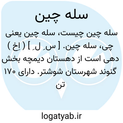 سله چین. [ س ِ ل ِ ] ( اِخ ) دهی است از دهستان دیمچه بخش گنوند شهرستان شوشتر. دارای 170 تن سکنه. آب آن از کارون. محصول آنجا غلات. شغل اهالی زراعت و راه آن در تابستان اتومبیل رو است. ساکنین از طایفه بختیاری هستند. ( از فرهنگ جغرافیائی ایران ج 6 ).
