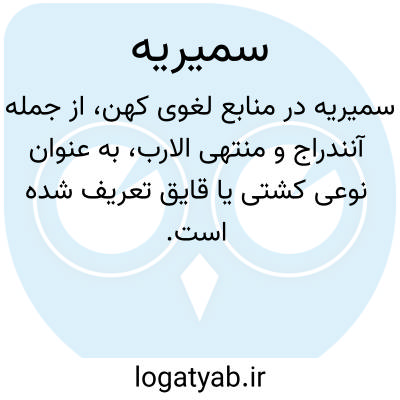 ( سمیریة ) سمیریة. [ س ُ م َ ری ی َ ] ( ع اِ ) نوعی از کشتی. ( آنندراج ) ( منتهی الارب ): رای تفرقهم رکب سُمَیْریَّة و اخذمعه طبیباً. ( کامل ابن اثیر ج 7 ص 101 ). || نوعی مسکوک که مردی یهودی بنام سمیر سکه می زد: ضرب دراهم اسلامیه را مردی از یهود که از اهل تیماء و مسمی بسمیر بود مینمود و بدین سبب دراهم مضروب وی را سیمیریه می نامیدند. ( رساله اوزان و مقادیر مقریزی ).