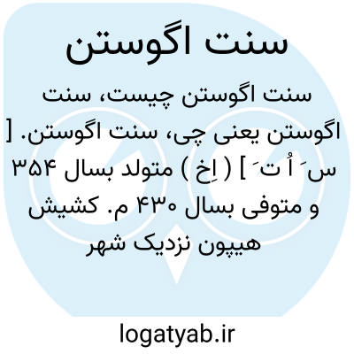 سنت اگوستن. [ س َ اُ ت َ ] ( اِخ ) متولد بسال 354 و متوفی بسال 430 م. کشیش هیپون نزدیک شهر بن پسر سنت مونیک پس از جوانیی پرحادثه وی بوسیله ٔمواعظ سنت آمبرواز هدایت شد و مشهورترین آباء کلیسای لاتینی گردید. آثار عمده او عبارتند از: شهر خدا و اعترافات. وی حکیم الهی، فیلسوف و عالم اخلاقی بود و میکوشید که نحله افلاطونی را با معتقدات مسیحی و عقل را با ایمان موافق سازد. ذکران وی 28 ماه اوت است. ( فرهنگ فارسی معین ).