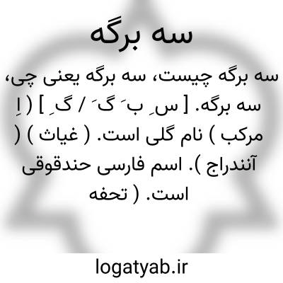 سه برگه. [ س ِ ب َ گ َ / گ ِ ] ( اِ مرکب ) نام گلی است. ( غیاث ) ( آنندراج ). اسم فارسی حندقوقی است. ( تحفه حکیم مؤمن ). || یونجه. ( ناظم الاطباء ). || شبدر. ( یادداشت بخط مؤلف ).