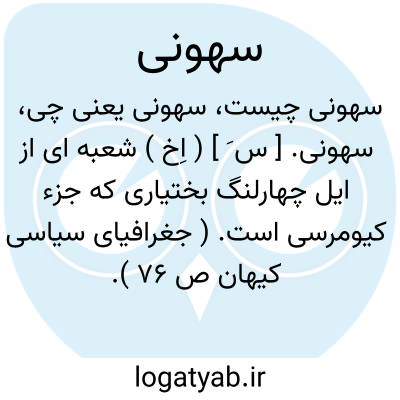 سهونی. [ س َ ] ( اِخ ) شعبه ای از ایل چهارلنگ بختیاری که جزء کیومرسی است. ( جغرافیای سیاسی کیهان ص 76 ).
