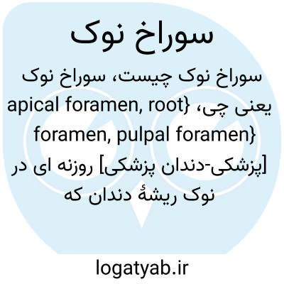 {apical foramen, root foramen, pulpal foramen} [پزشکی-دندان پزشکی] روزنه ای در نوک ریشۀ دندان که عصب و رگ های دندان از آن عبور می کند